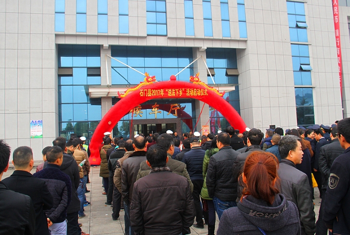 启动仪式后,石门交警大队楚江中队、东城中队等基层中队分别走进乡镇、街道和集市,同步开展了送法下乡活动,宣讲春运出行常识,普及交通法规,回答群众咨询,取得了良好的效果。